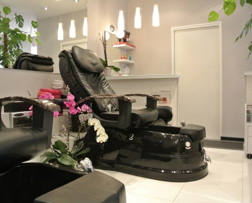 Feet care are dispensed in a dedicated area called “the pedi nail bar” with optimal comfort conditions on balneotherapy massage armchairs.